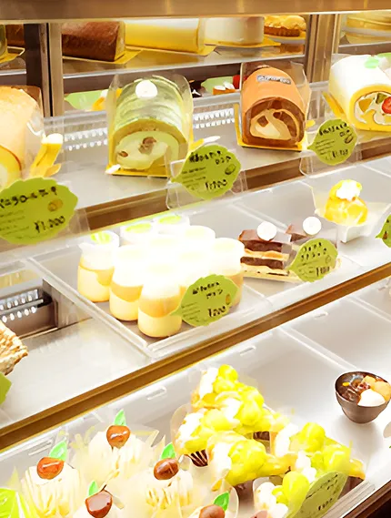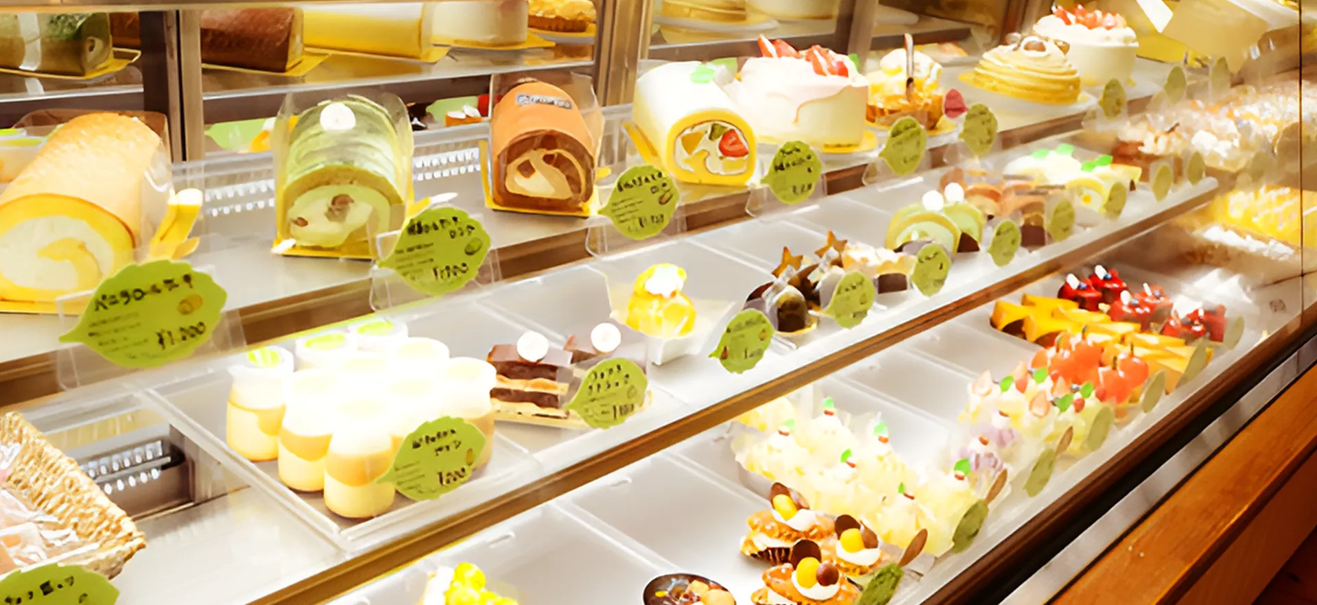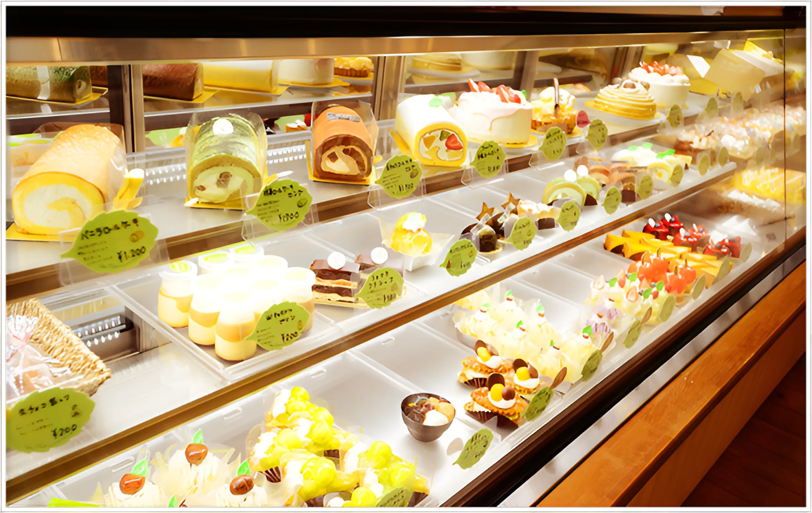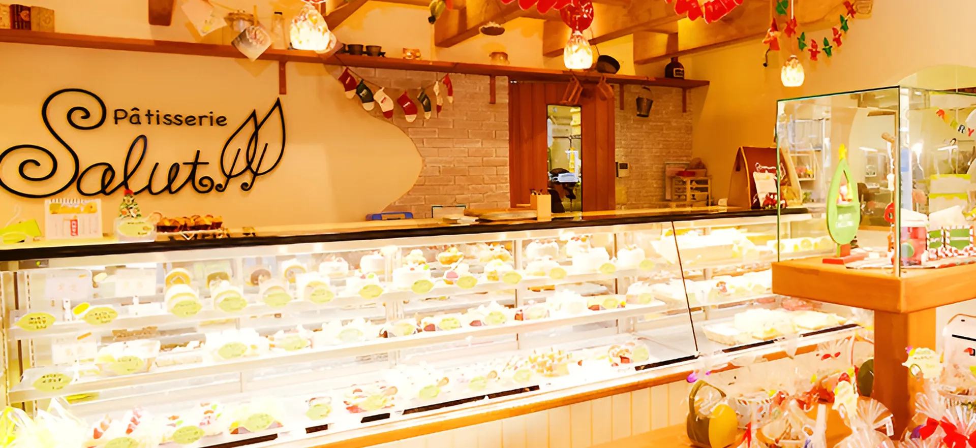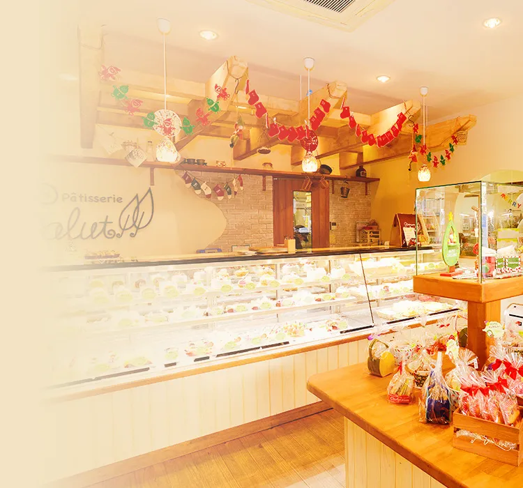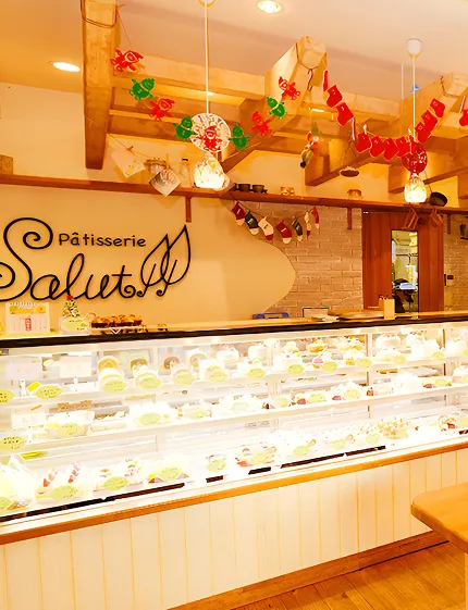 上から下までがガラス張りの窓や入口の扉の木枠には、濃い茶色に塗られた木材が使用されており、白い壁との対比がおしゃれなたたずまいを演出しています。
